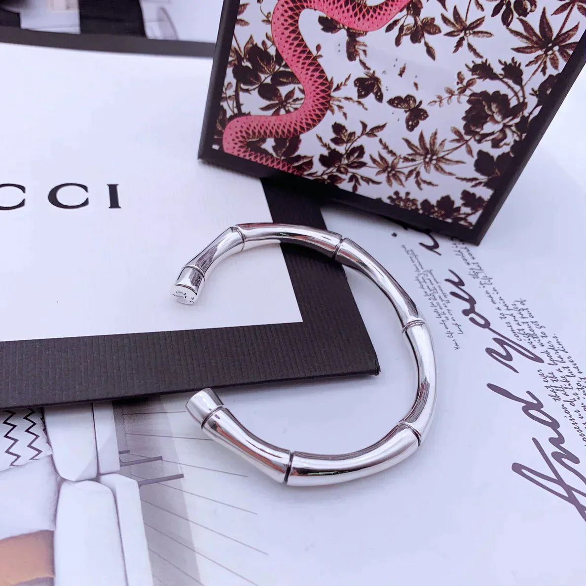 STERLING SILVER HIGH BAMBOO OPEN BRACELET