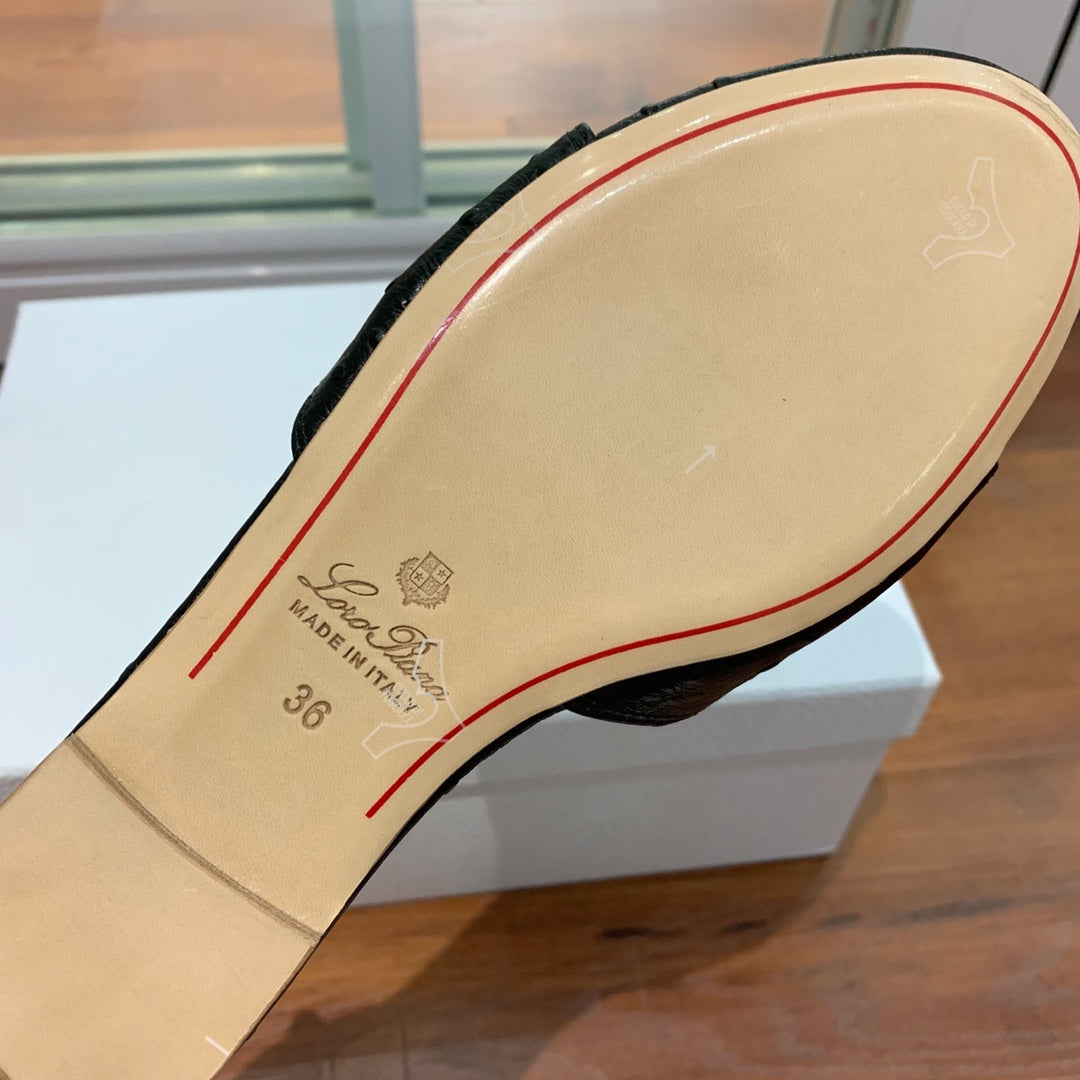 Summer Charms Sandals Mule Black Ostrich Brown Lambskin