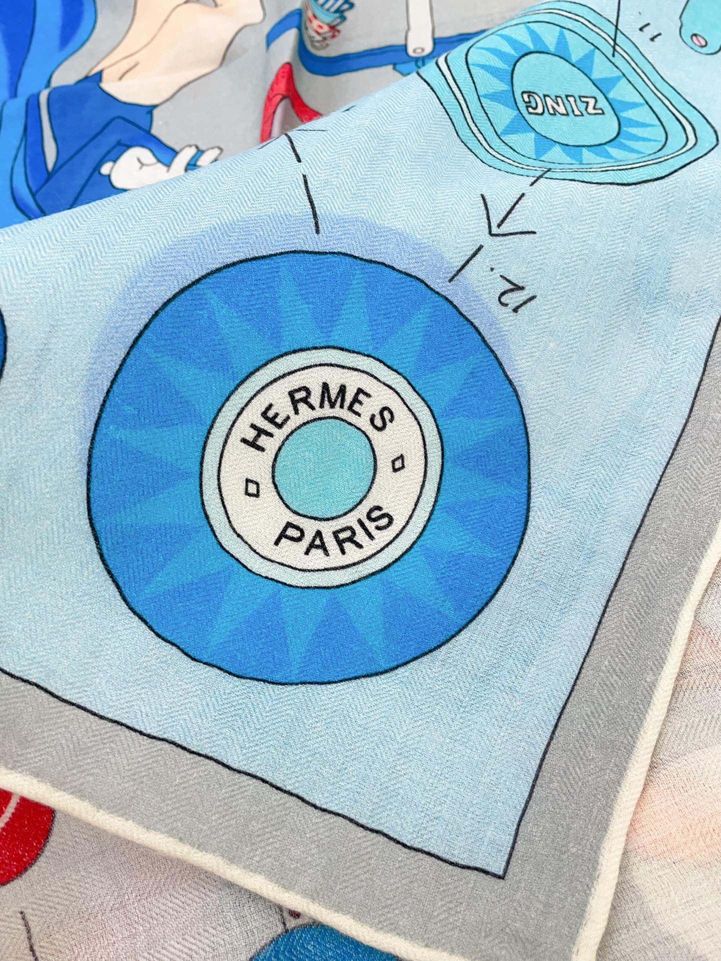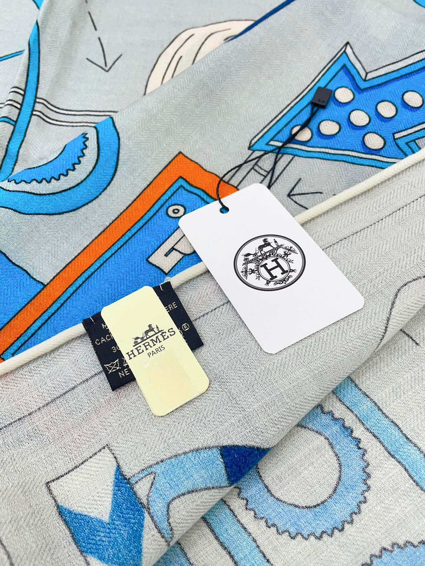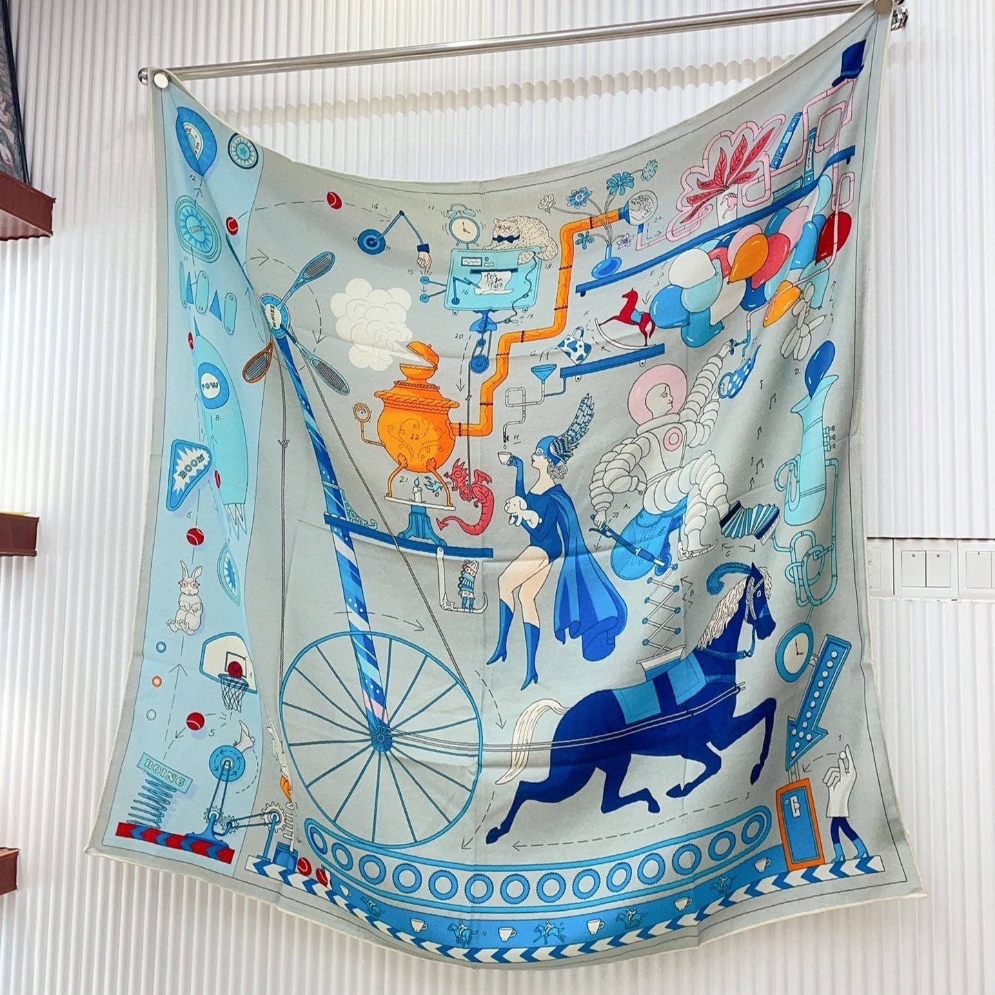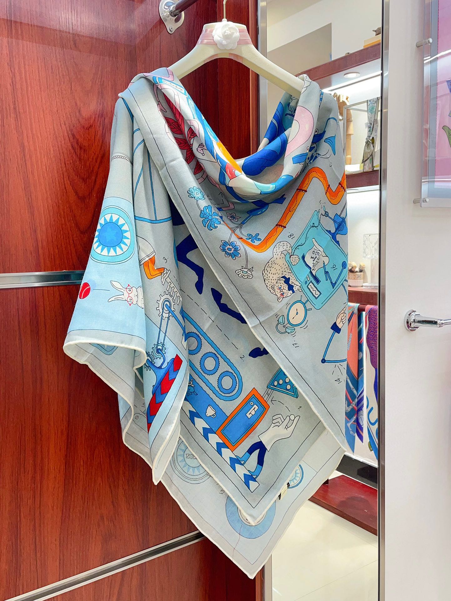 Tea For Two Scarf 140 CM Light Blue Colorful Cashmere And Silk 403890