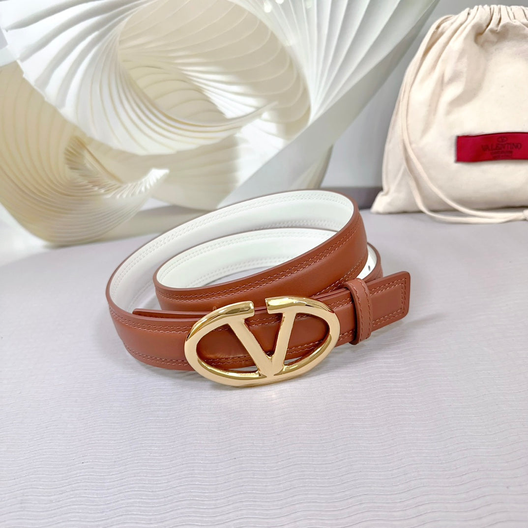 The Bold Edition Belt 30mm Brown White Calfskin Shiny Gold Buckle