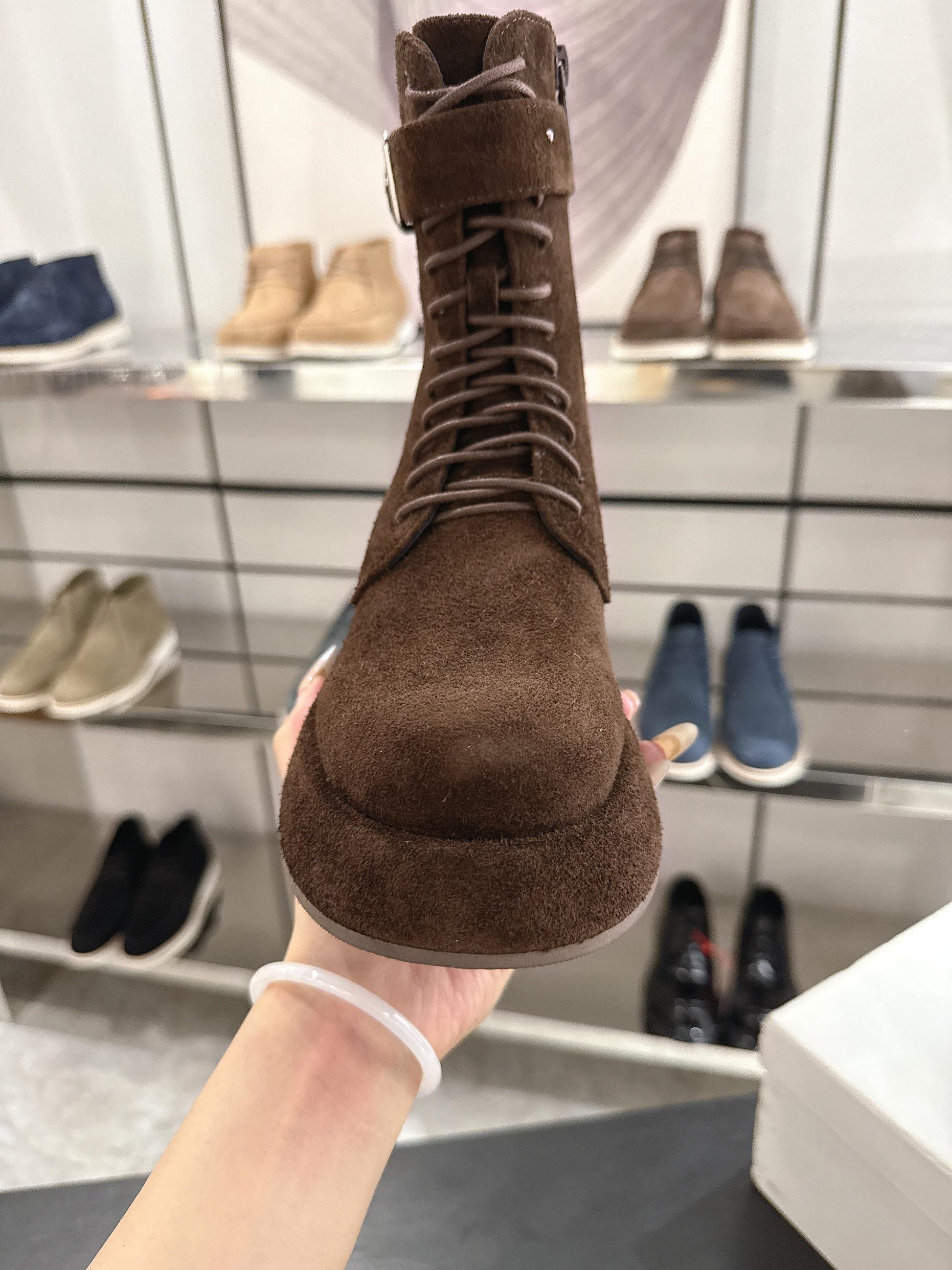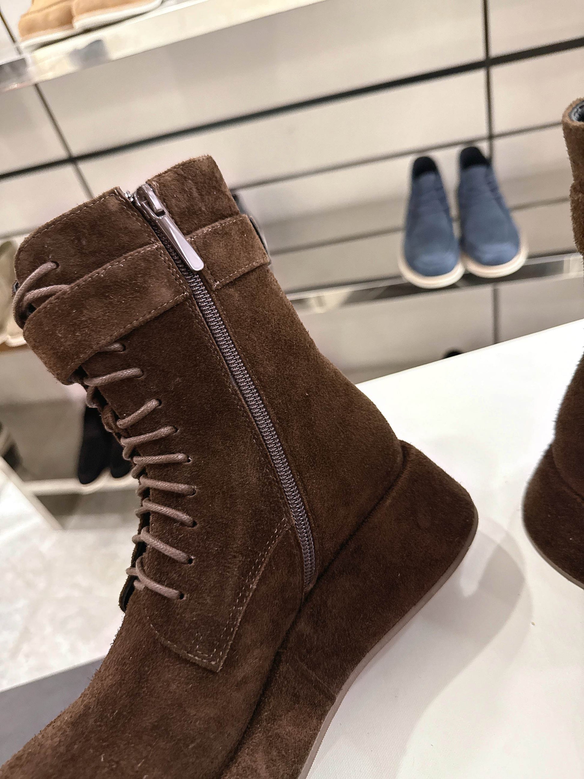 The Row 2025 Lace-up Boot Brown Suede 543370