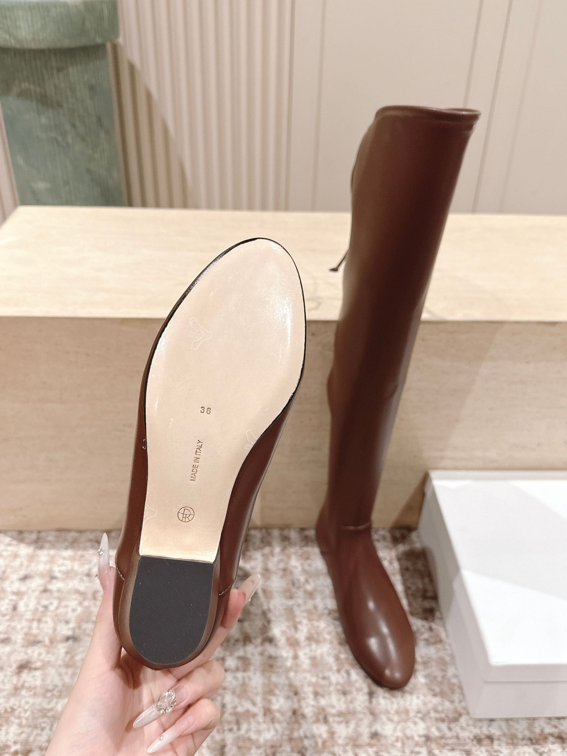 The Row 2025 Over-the-knee Boot Brown Elastic PU Sheepskin 556128