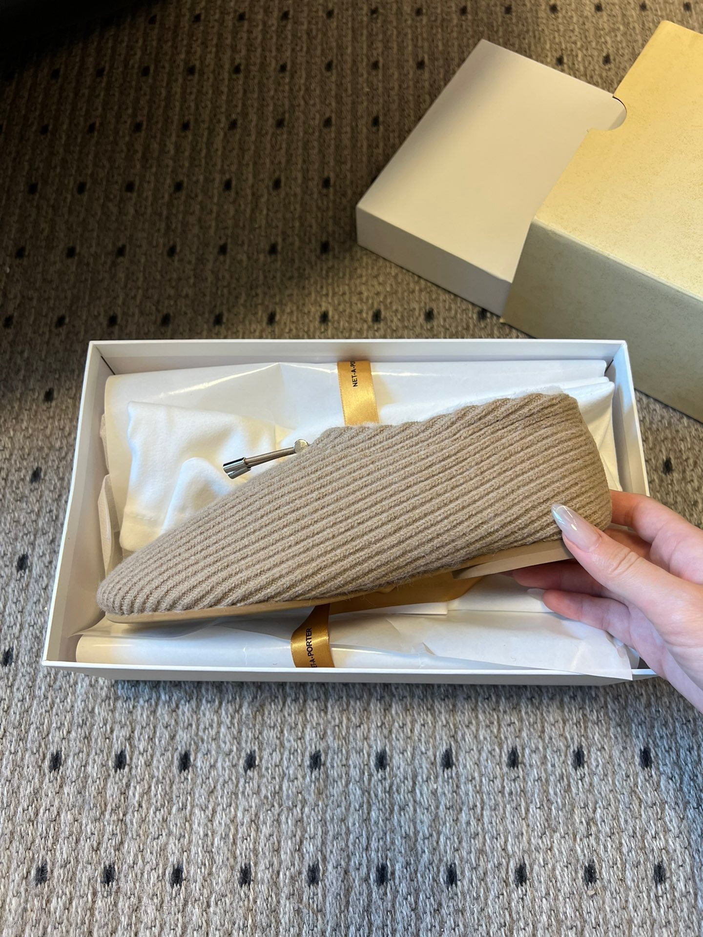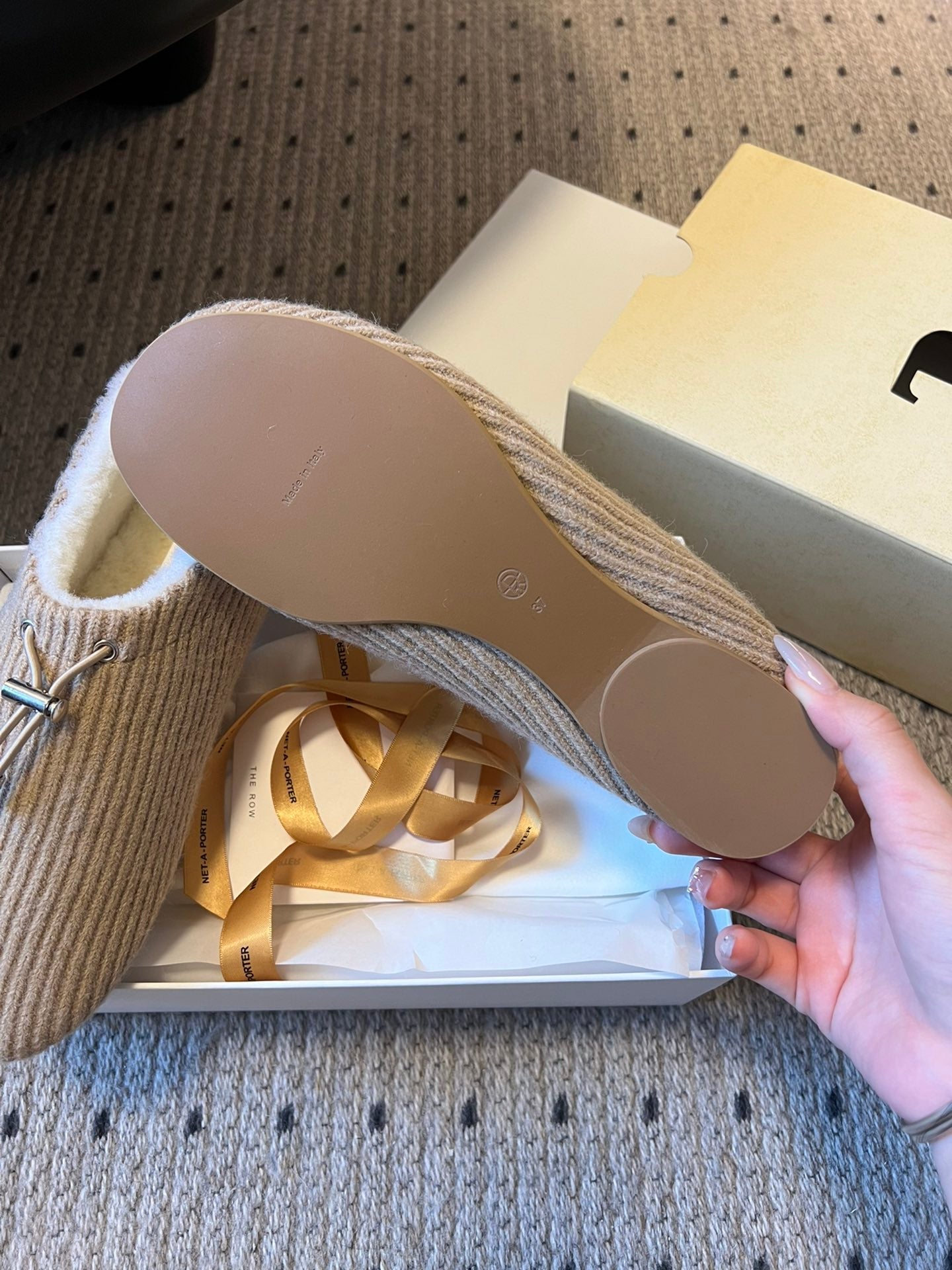 The Row 2025 Striped Furry Slipper Beige White Wool 561638
