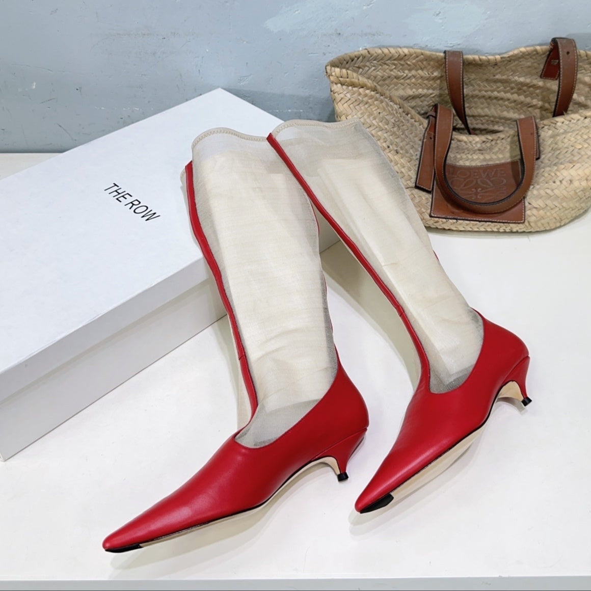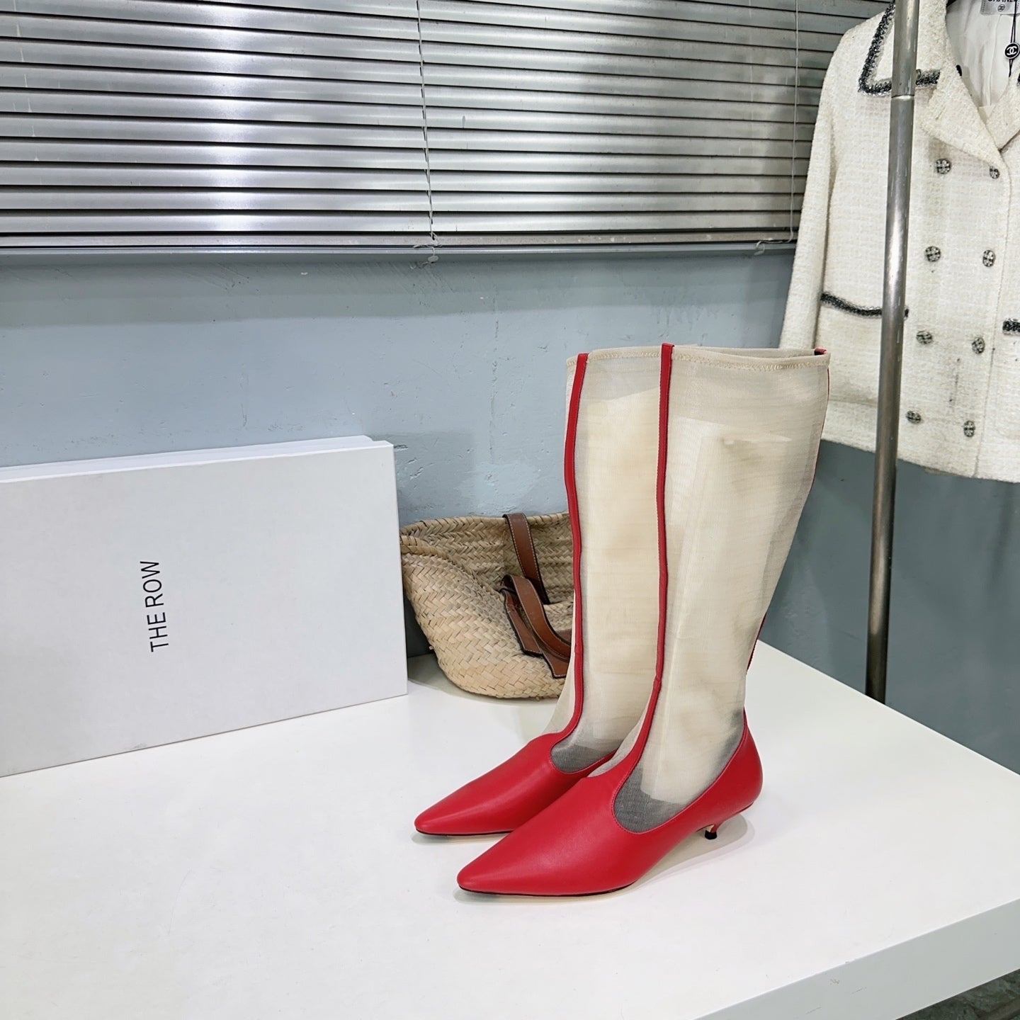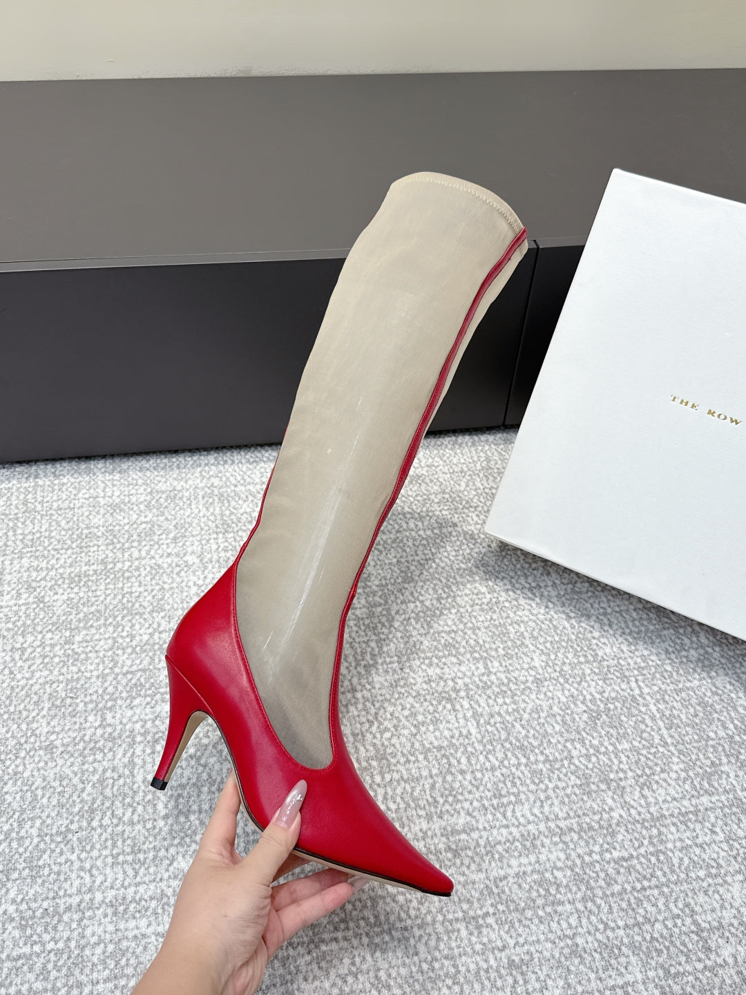 The Row White Mesh Red Leather Knee Boot