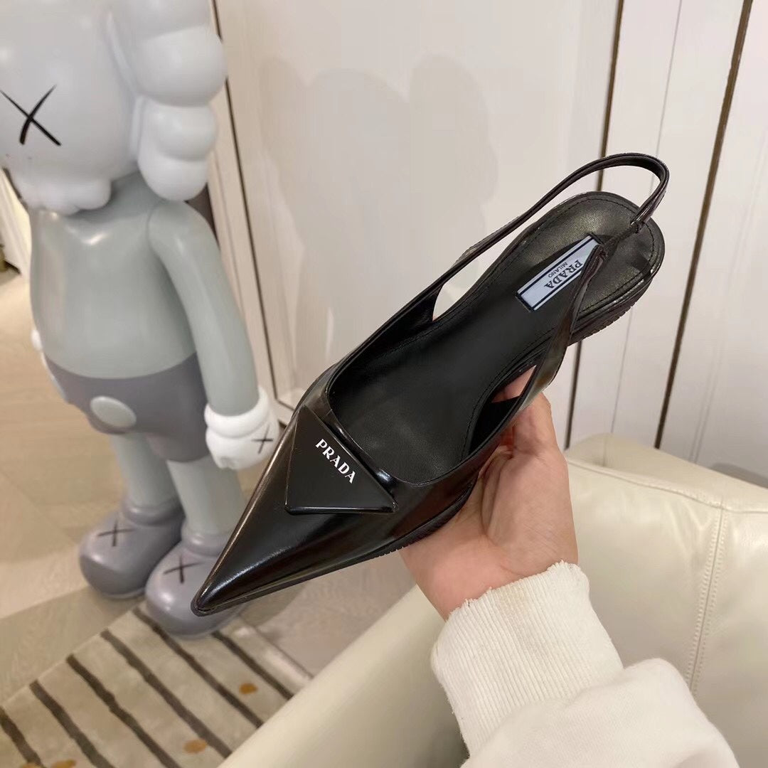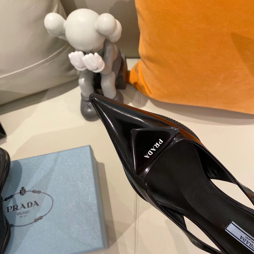TRIANGLE LOGO SLINGBACK PUMPS IN BLACK GLOSSY CALFSKIN