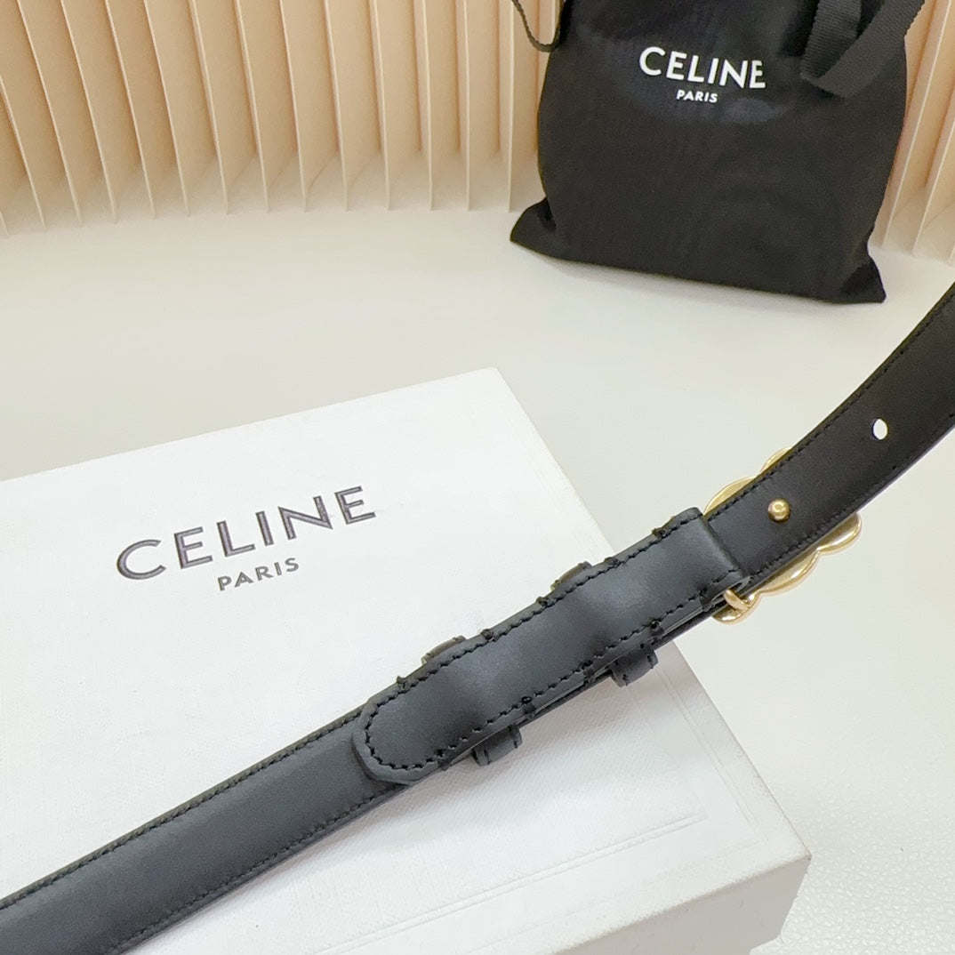 Triomphe Belt 18mm Black Calfskin Gold Buckle Logo Motif Attached
