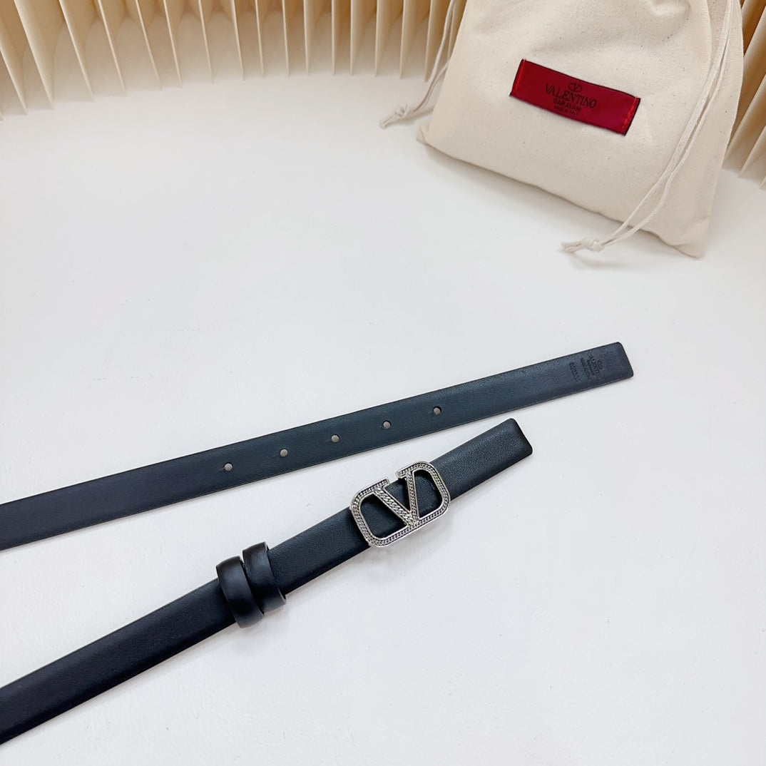 Vlogo Buckle Water Wave Silver Copper Glossy Black Leather 20mm Belt