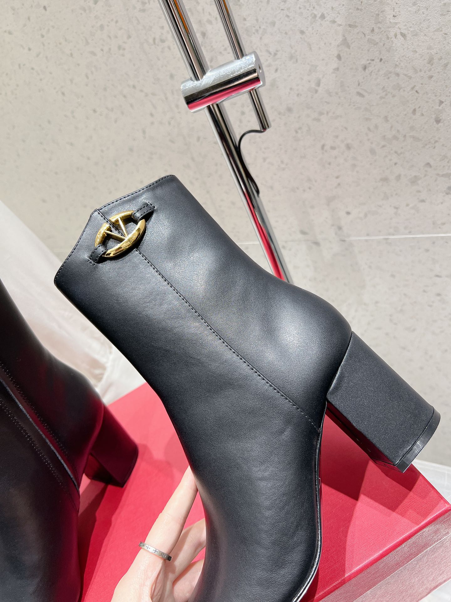 VLOGO SIGNATURE WHITE CALFSKIN ANKLE BOOT 75 MM