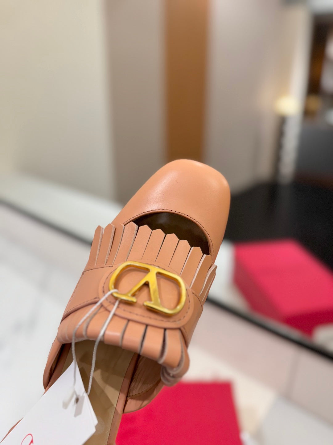VT 2025 Signature Heeled Mule Cantaloupe Calf Leather 295080