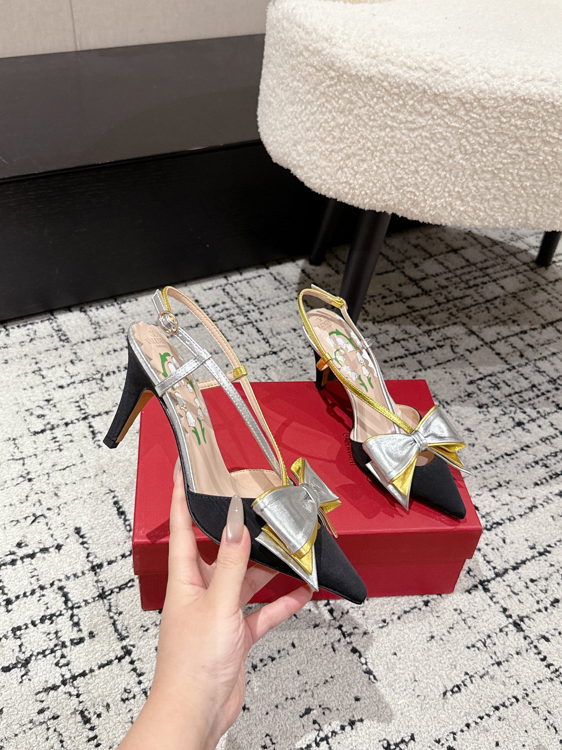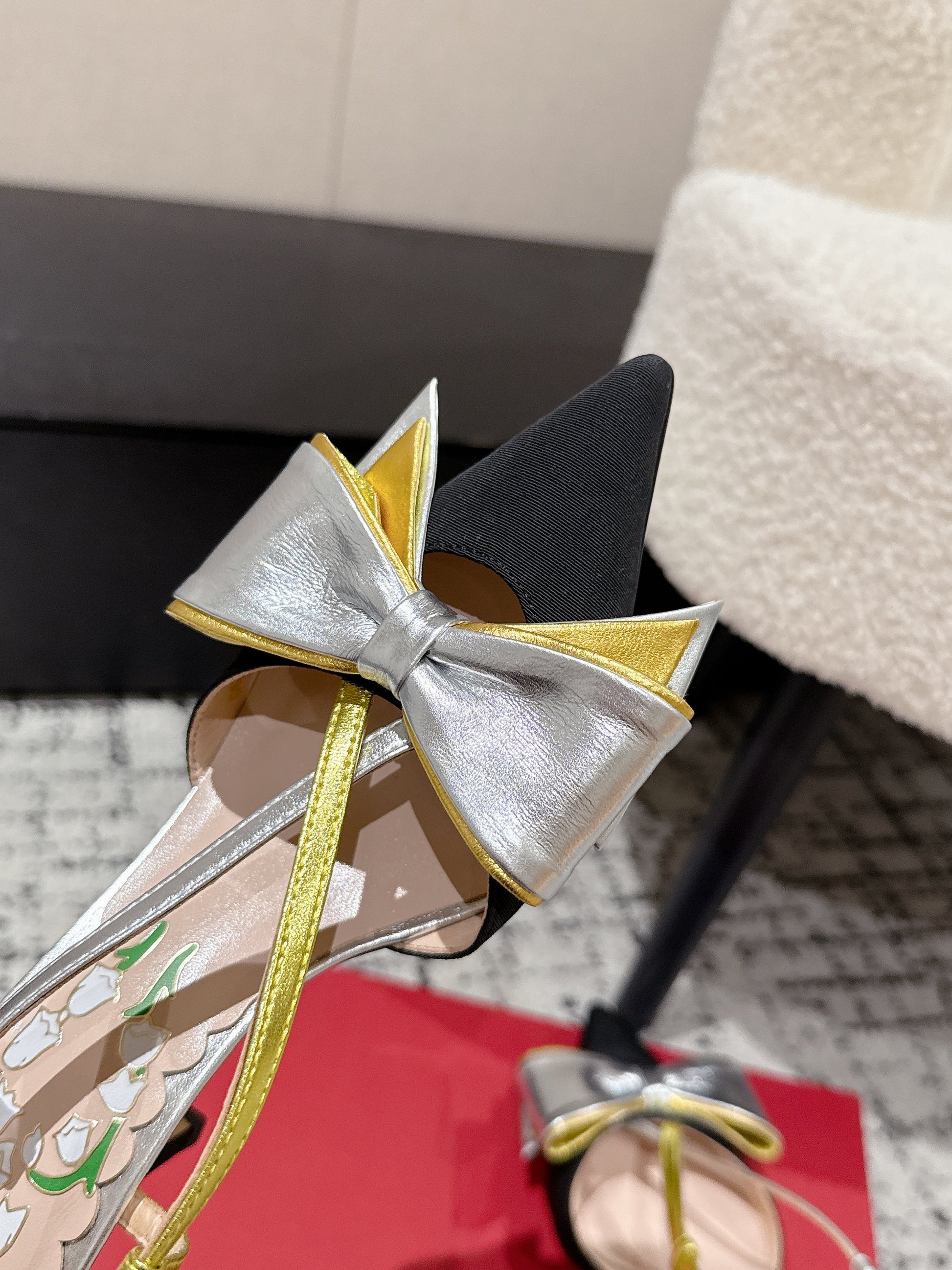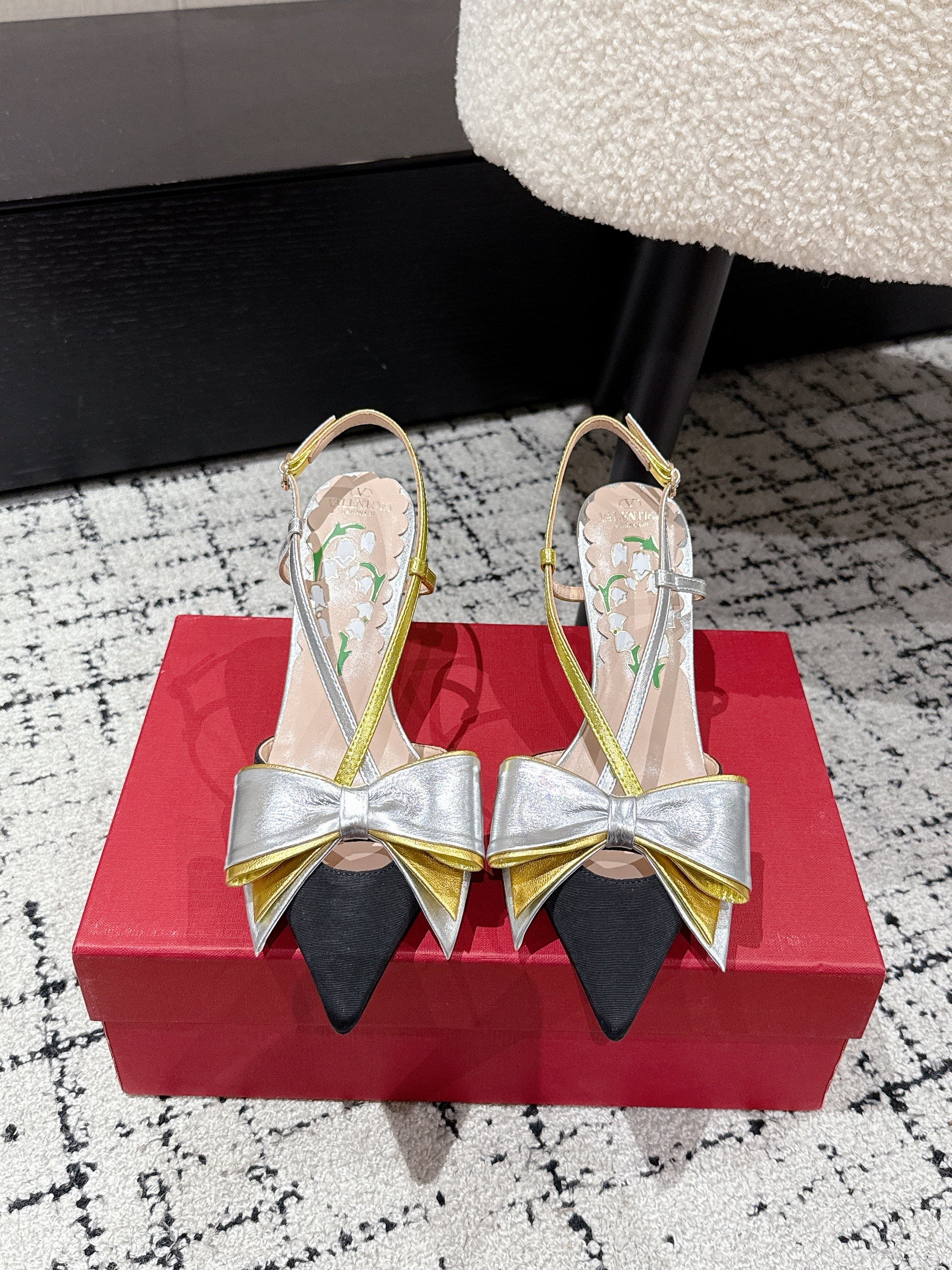 VT 25 Bowow Slingback Black Sliver Satin Sheepskin 327739
