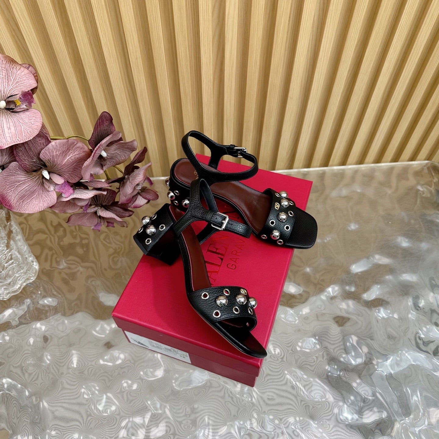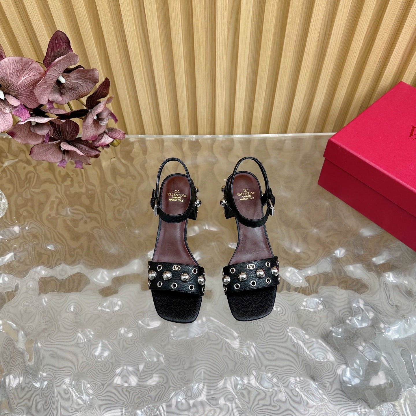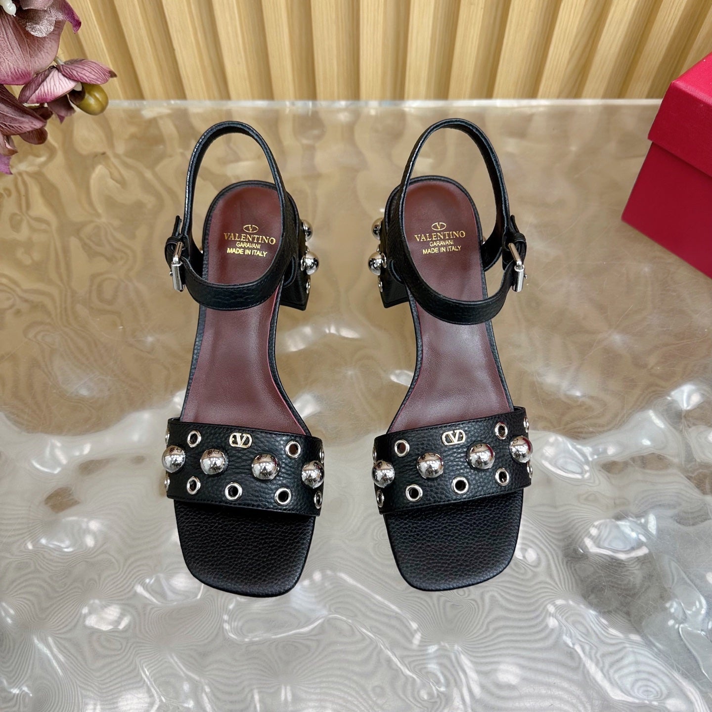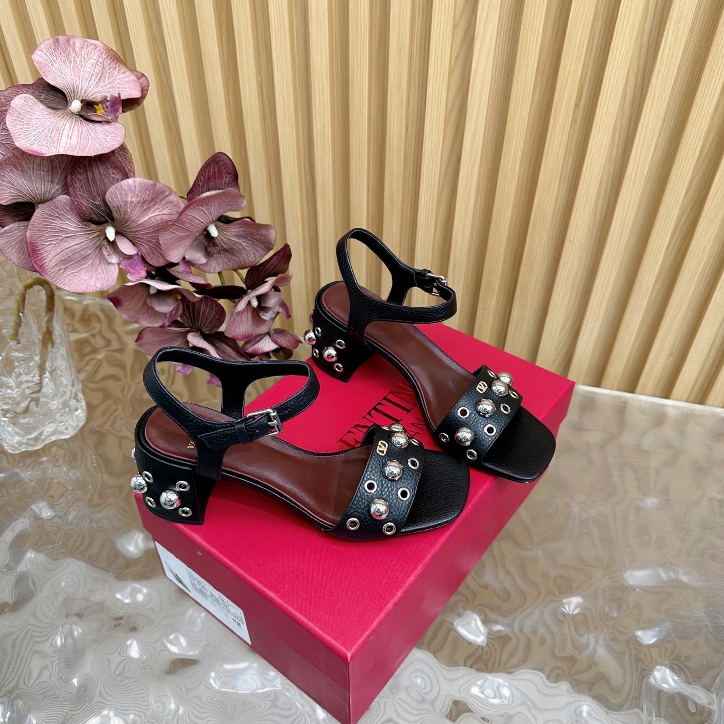 VT 25 Rivet Steel Beads Slingback Black Lambskin 325205