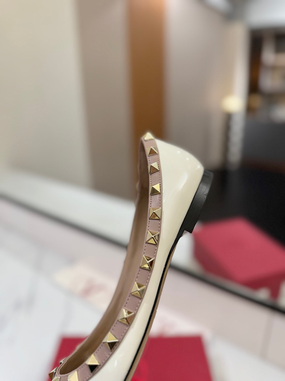 VT Rockstud Ballet Flat White Goatskin