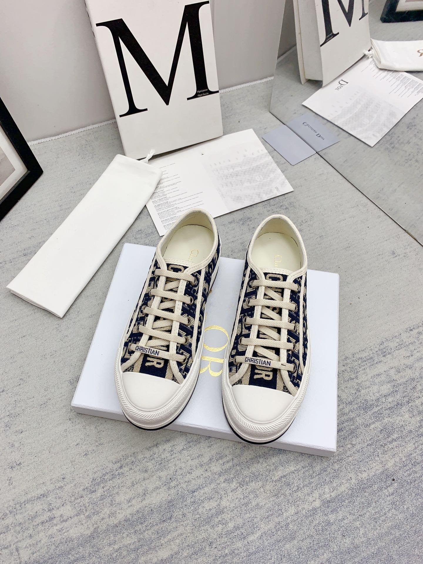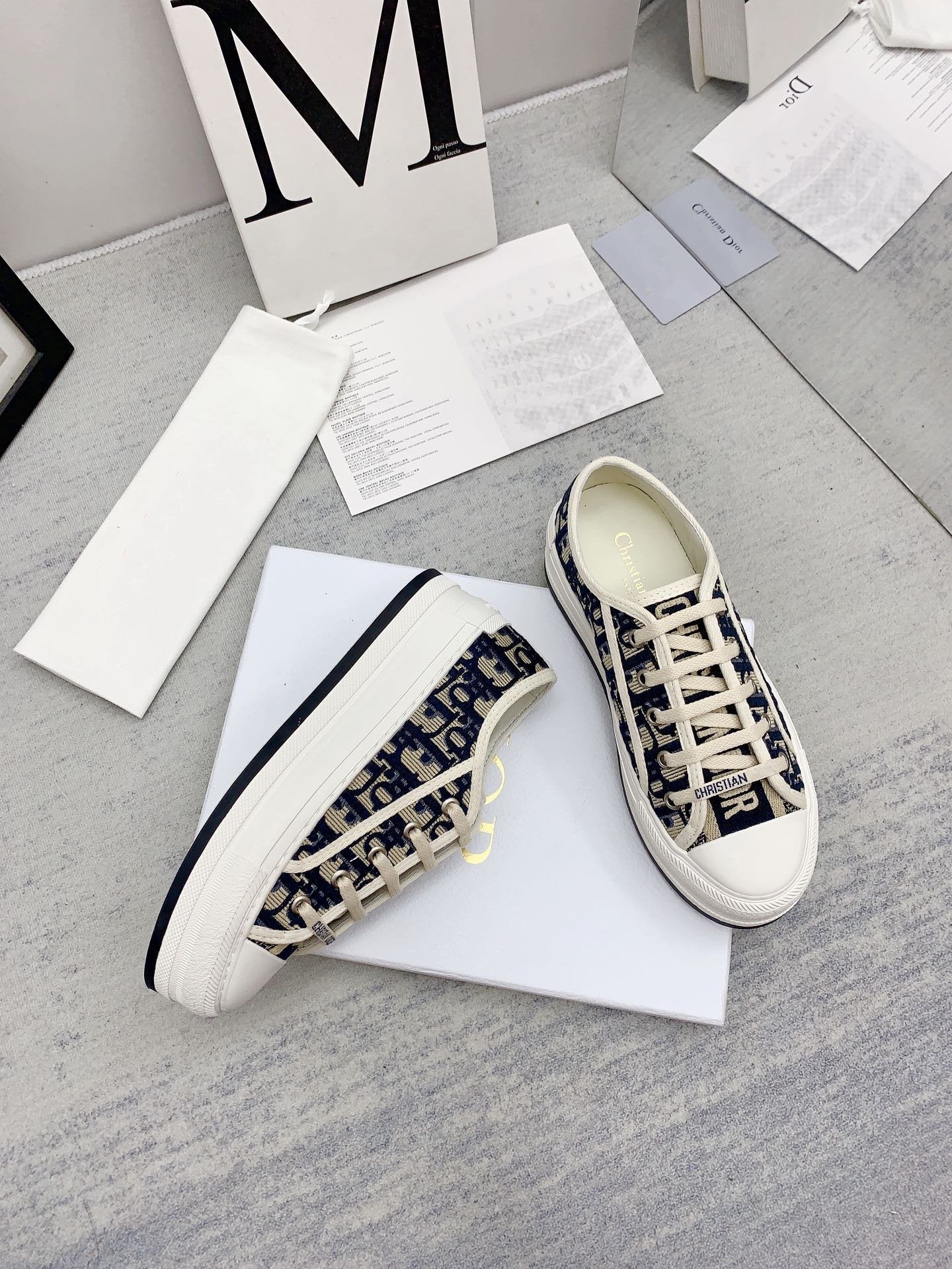 walkn 45 beige blue oblique embroidery canvas