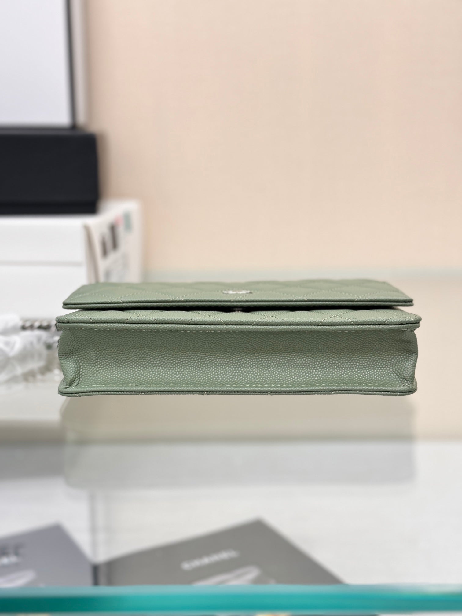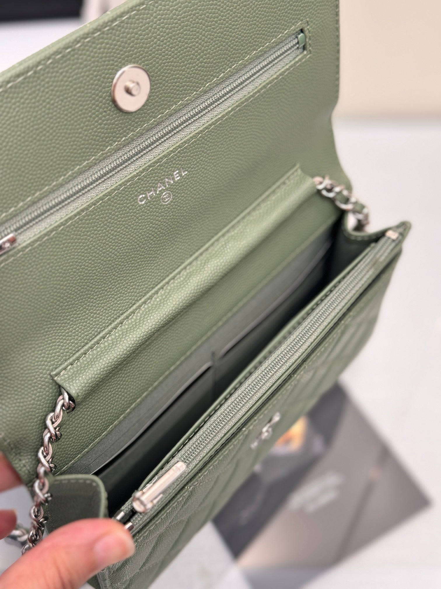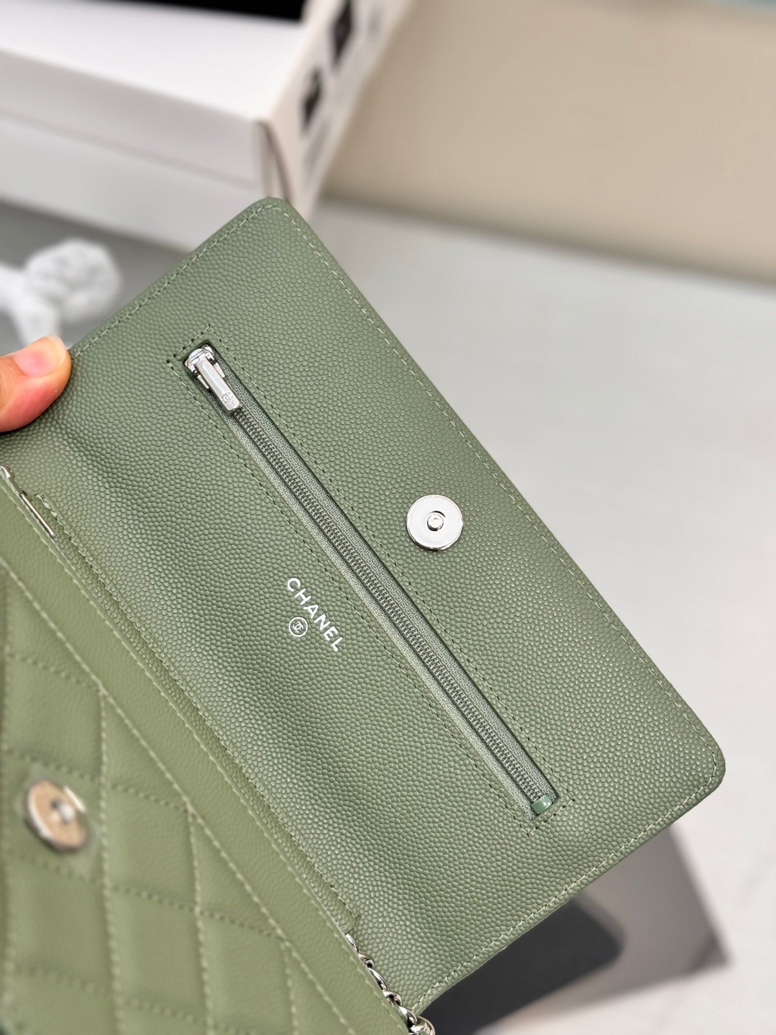 WOC 19CM KHAKI BLUE CAVIAR SILVER HARDWARE