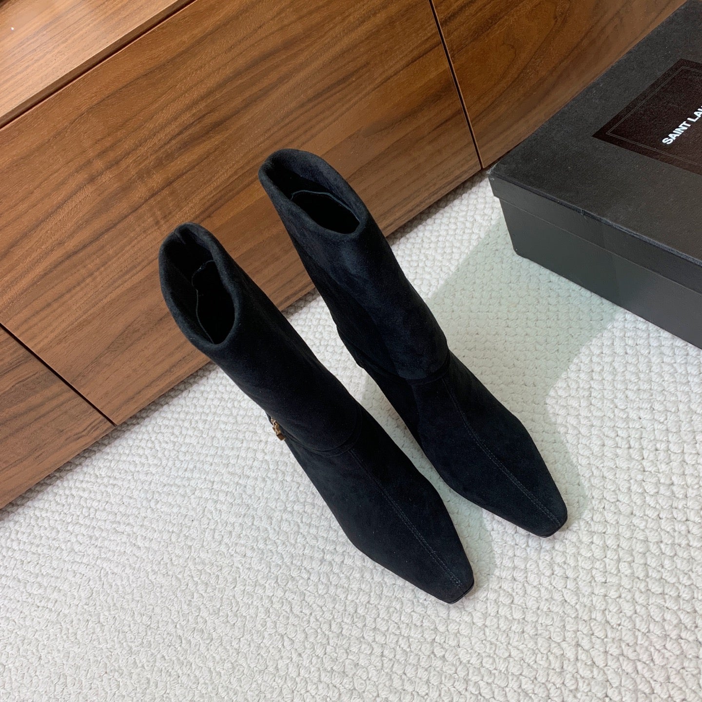 YSL 2025 High-heeled Ankle Boot Black Suede 574076