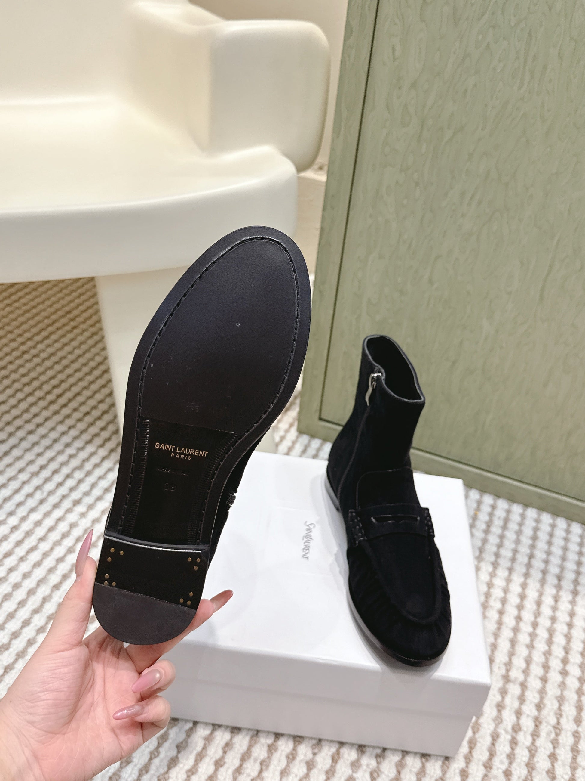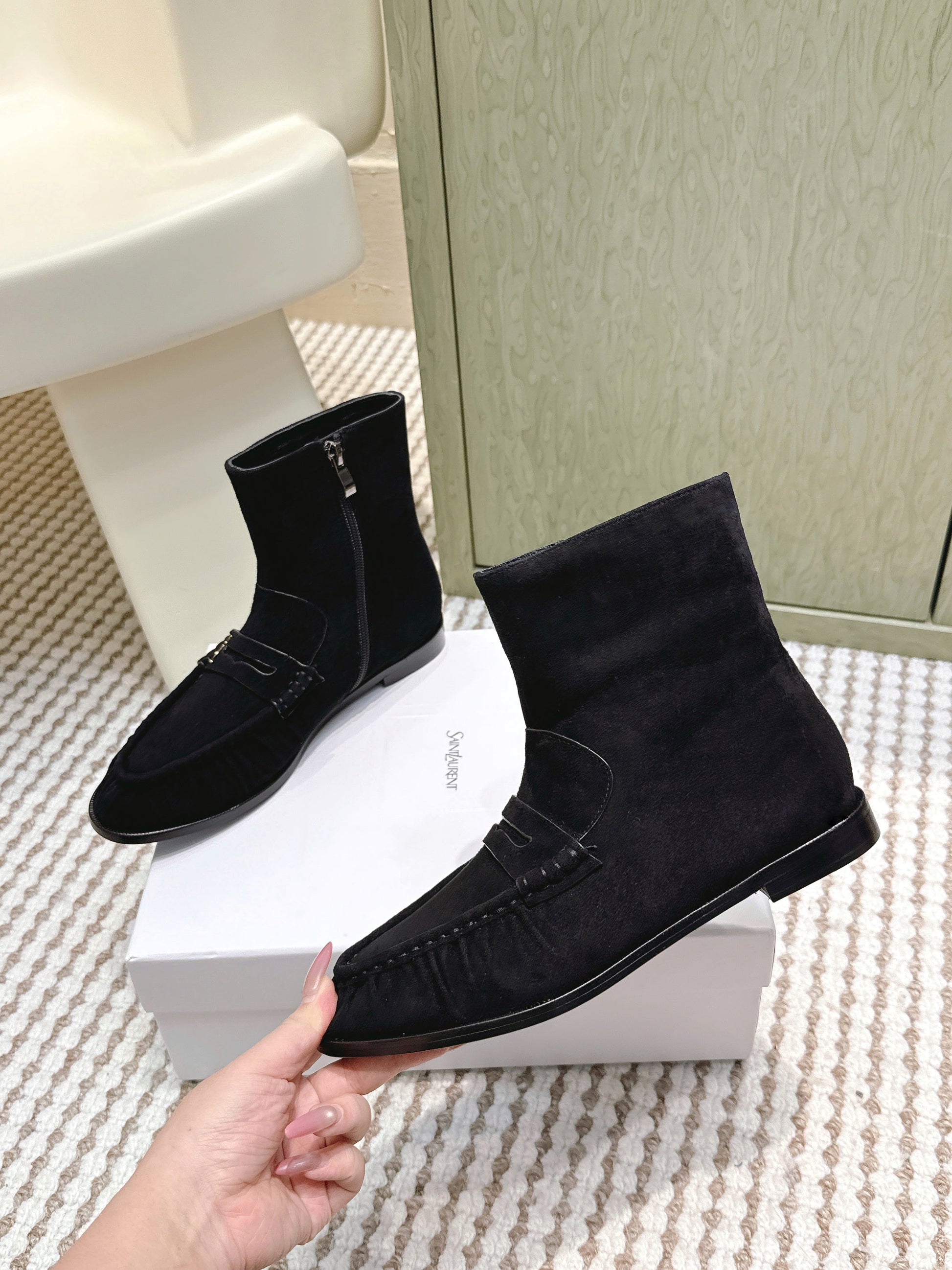 YSL 2025 High-top Loafer Black Suede 569417