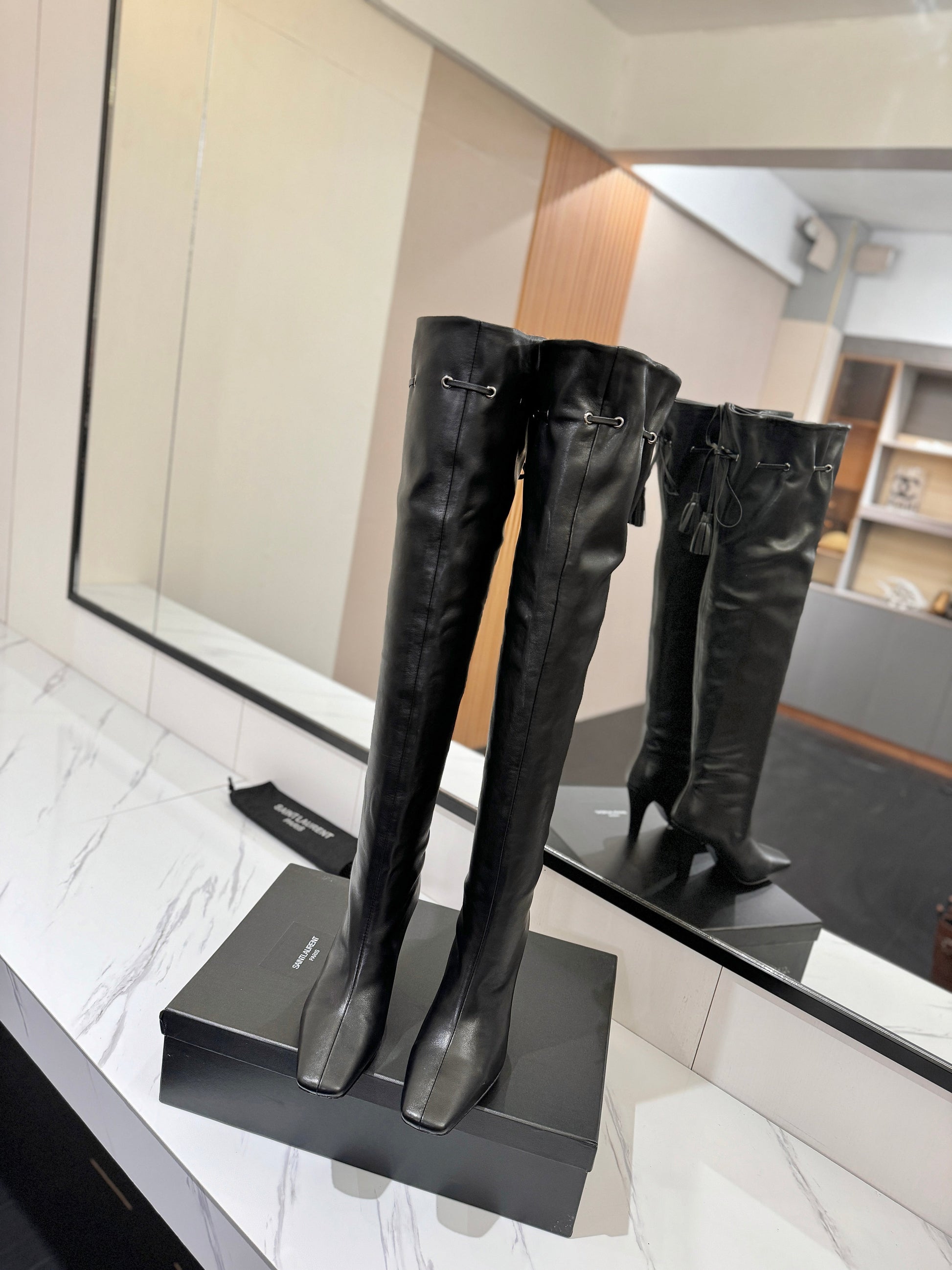YSL 25 Over-the-Knee Martin Boot Black Calfskin 520782
