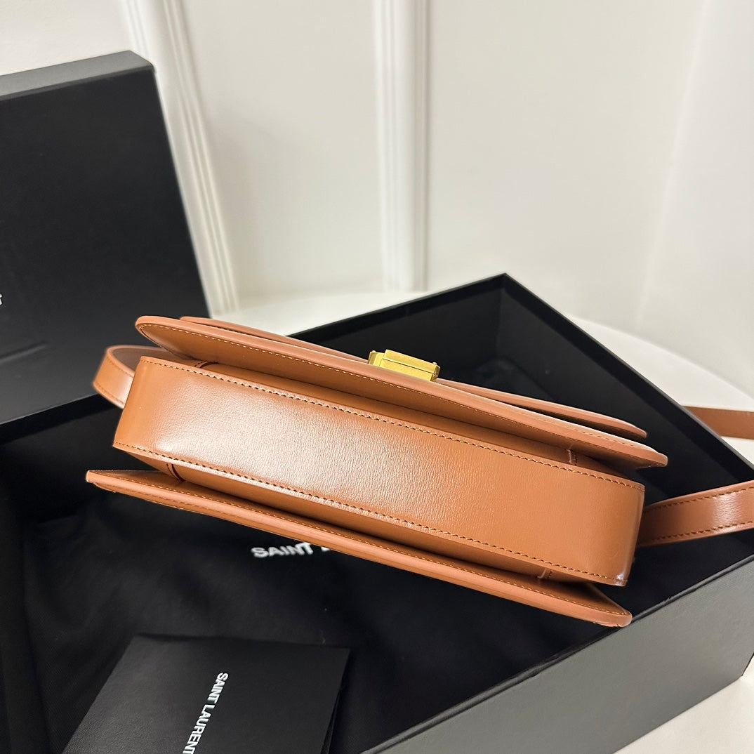 YSL Solferino Small Satchel Bag Brown Beige Gold Calfskin Canvas 339479