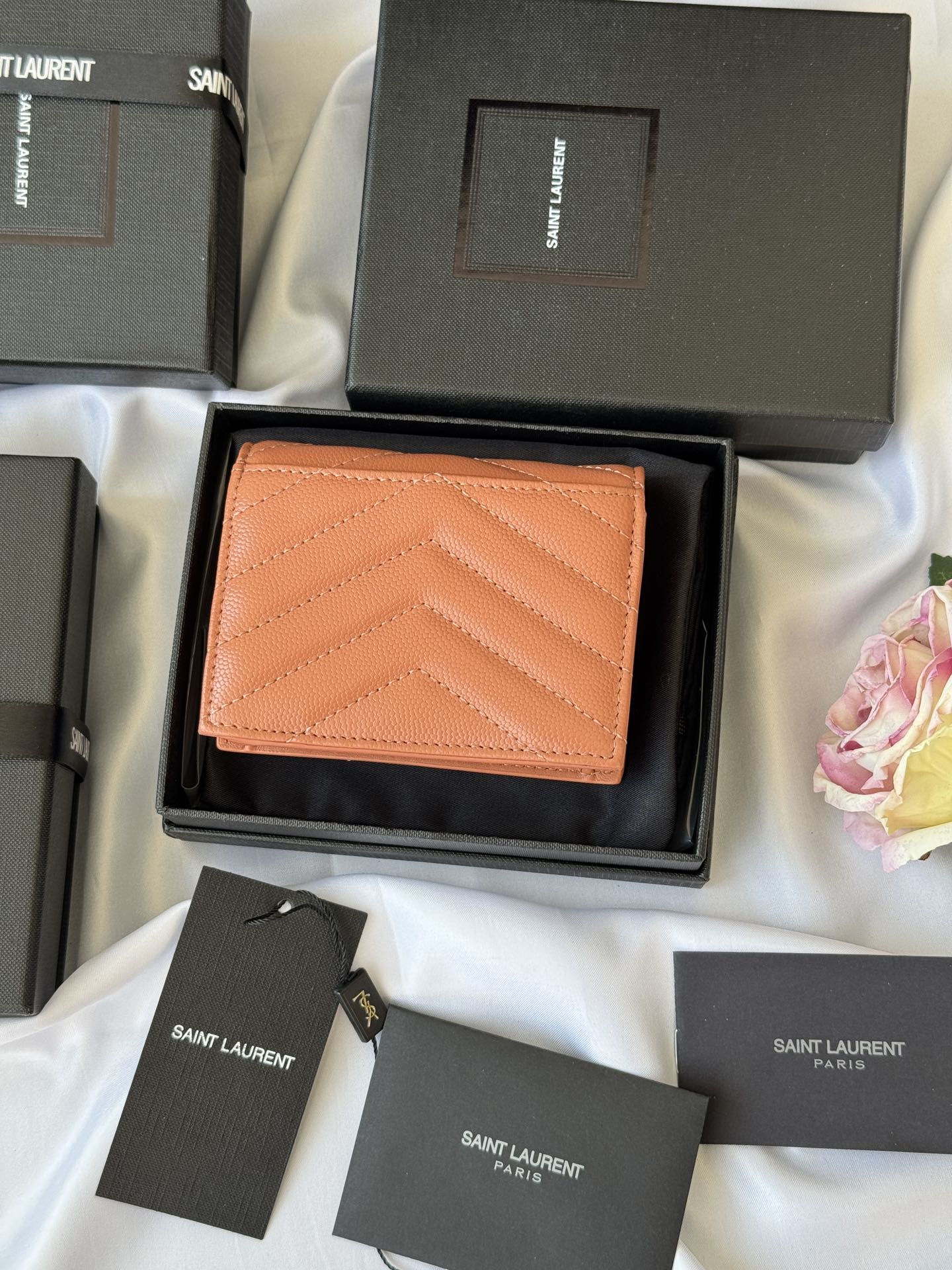 YSL Wallet Light Brown Gold Cowhide 240586