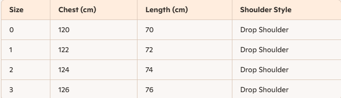 - Size : 0,1,2,3