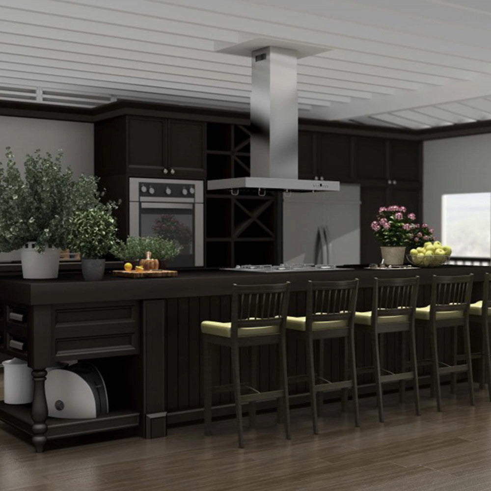 The ZLINE KE2i is a professional island mount stainless steel hood designed to be both elegant and powerful, featuring the industry's only lifetime warranty motor. This hood is made from 430-grade stainless steel and is a ZLINE classic. Its durable construction, modern design, and lifetime warranty motor - a ZLINE exclusive - guarantee a range hood with a timeless design that will last a lifetime.
