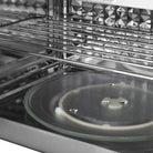 - Glass turntable to distribute heat evenly